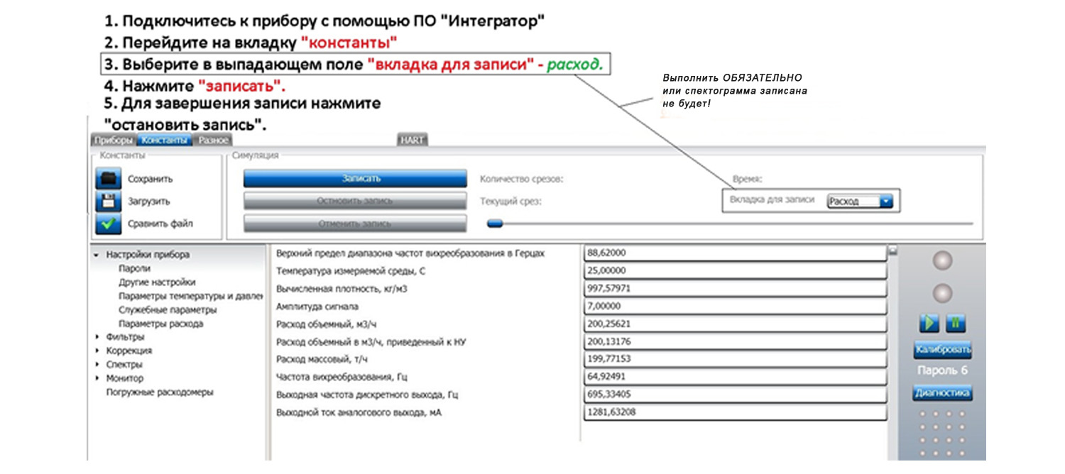 Для записи файла симуляции необходимо подключиться к прибору с помощью ПО «ЭМИС-Интегратор» и следовать инструкции на рисунке ниже.
