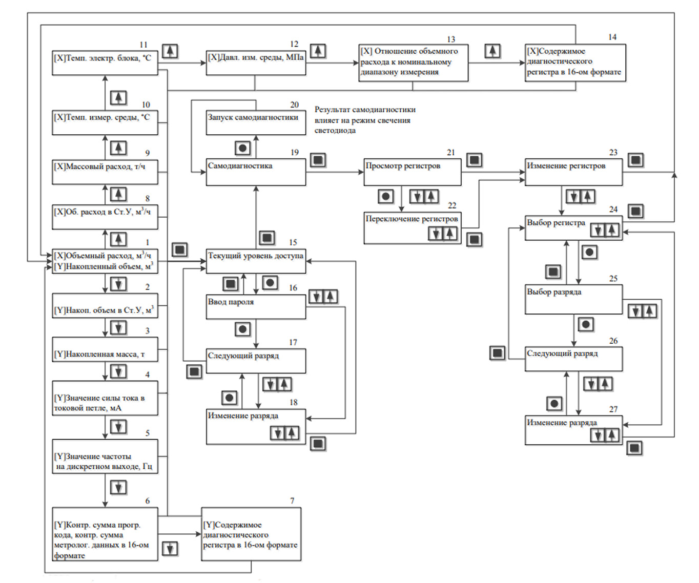 На рисунке представлена структура меню расходомера.